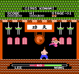 《功夫小子》(Yie Ar Kung-Fu)是1985年由科乐美开发的经典FC格斗游戏,以李小龙为原型设计主角“李”,讲述其对抗清朝末年“炒饭一族”的冒险故事。游戏首创血条、拳脚分离等格斗机制,成为后世格斗游戏的范本,其标志性BGM“蹬蹬蹬~”至今仍被广泛视为中国元素的代表。