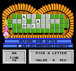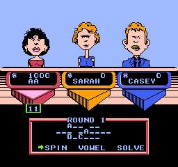 《幸运之轮星星版》(Wheel of Fortune – Starring Vanna White)是一款基于经典电视问答游戏改编的FC平台作品,由美版节目原班人马参与制作,凡娜·怀特(Vanna White)作为标志性主持人角色在游戏中亮相。玩家通过转动轮盘猜词解谜,还原了电视版中“字母竞猜”的核心玩法,并适配FC硬件特性设计了像素化角色立绘与简单音效。