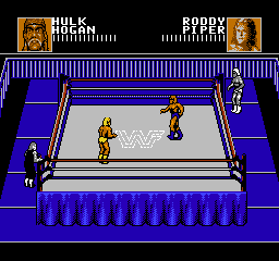 世界摔角联盟-铁笼挑战赛(WWF WrestleMania – Steel Cage Challenge)是一款以WWE经典赛制为题材的FC游戏,玩家可在游戏中体验钢铁牢笼赛的激烈对抗。游戏还原了真实摔角规则,包括压制、逃脱或通过笼顶/门离开等获胜方式,并采用像素风格呈现标志性的六角笼场景。