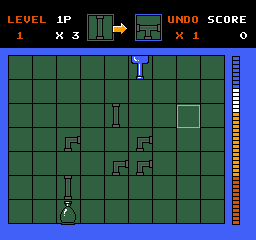 《接水管》(Water Pipes)是FC平台上一款经典的益智游戏,玩家需要通过旋转管道部件,将水源入口与出口连接成完整水路。游戏采用网格布局,管道需按固定方向拼接,水流验证机制要求路径完全贯通,否则会触发重置。部分版本还引入时间限制或分支管道等复杂要素,考验玩家的空间规划能力。