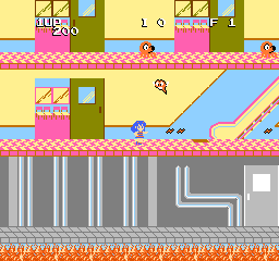 该作由TOSE公司开发,移植自1985年街机版《桃子120%》,保留了像素时代的特色操作手感。其关卡设计融合了校园祭、鬼族入侵等动画名场面,通过婚礼钟声的倒计时机制增强紧张感。作为早期漫改游戏代表作,成功将原著无厘头风格转化为8位机时代的娱乐体验。