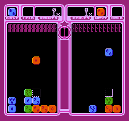 “特林卡方块”是FC平台上经典的益智游戏,其海外版本通常被称为《Tetris (Tengen)》。由于当年盗版商引进的缘故,这款游戏在国内并没有确切的名字,在N合1卡带上常被记为《俄罗斯方块2》。游戏的基本玩法是从上方不断落下各种形状的方块组合,玩家通过调整其方向和落点,与下方的方块层形成最佳排列组合,填满平行的一排后即可消除得分。