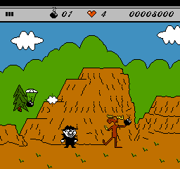 《波波鹿与飞天鼠》是1992年由Imagineering开发、THQ发行的FC平台动作游戏,改编自同名经典动画。玩家需操控松鼠Rocky和麋鹿Bullwinkle,在七个关卡中跳跃战斗,从反派Boris和Natasha手中夺回文物,游戏包含隐藏内容和幽默元素。