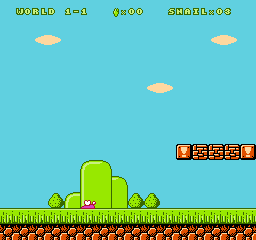 蜗牛跳跳(Snail Hop)‌是一款发布于FC平台的经典动作游戏,玩家扮演一只身披彩壳的蜗牛,通过跳跃在布满陷阱的奇幻森林中冒险。游戏采用卷轴式关卡设计,核心玩法是精准控制蜗牛的跳跃高度与落点,避开尖刺、滚石和食人花等动态障碍,同时收集散落在蘑菇和树冠上的星星。 蜗牛的特殊能力是“粘附跳跃”,接触墙面时可实现二次弹跳,这一机制考验玩家的时机把握能力。关卡中隐藏着传送门、弹簧板等互动元素,搭配8-bit风格的欢快背景音乐,营造出轻快又挑战性十足的游戏氛围。